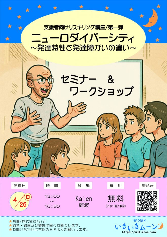 ニューロダイバーシティを理解し、オープンダイアローグで誰もがいきいきとはたらけるインクルーシブ社会の実現を目指すいきいきムーンの運営を手伝ってくれる人。
